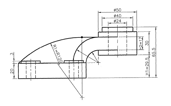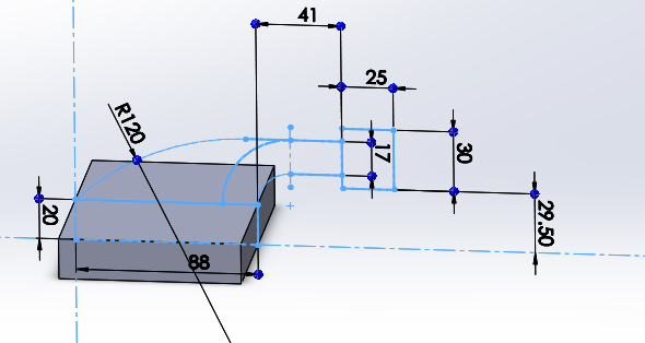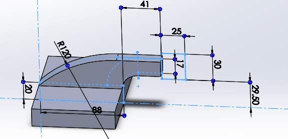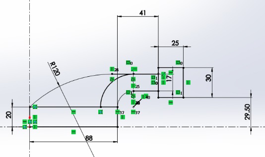 如上圖所示,兩個肋與主體有相切相交的限制條件,因此我們由一張草圖將大致輪廓一併繪製。