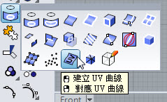 選取投影曲線工具中的建立UV曲線