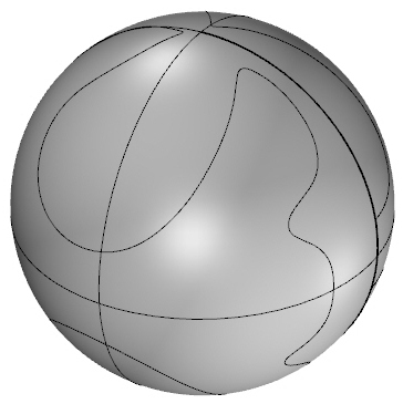 剛剛所繪製的曲線會轉貼至圓球體上,接著使用修剪將不要的面修剪掉。