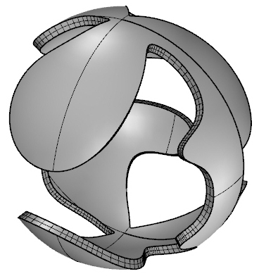 修剪完後,使用偏移曲面賦予實體厚度後就完成一樣精美的球體雕花造形了!