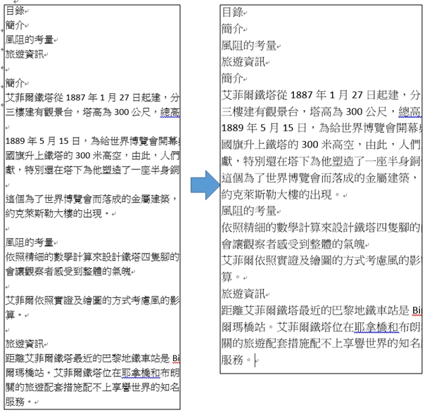 首先要先有一份簡報製作需要用到的資料文件,並將簡報不會用到的內容刪除。 |
