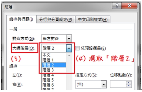 再選取投影片文字內容,到「段落 / 大綱階層」選擇「階層2」。 |
