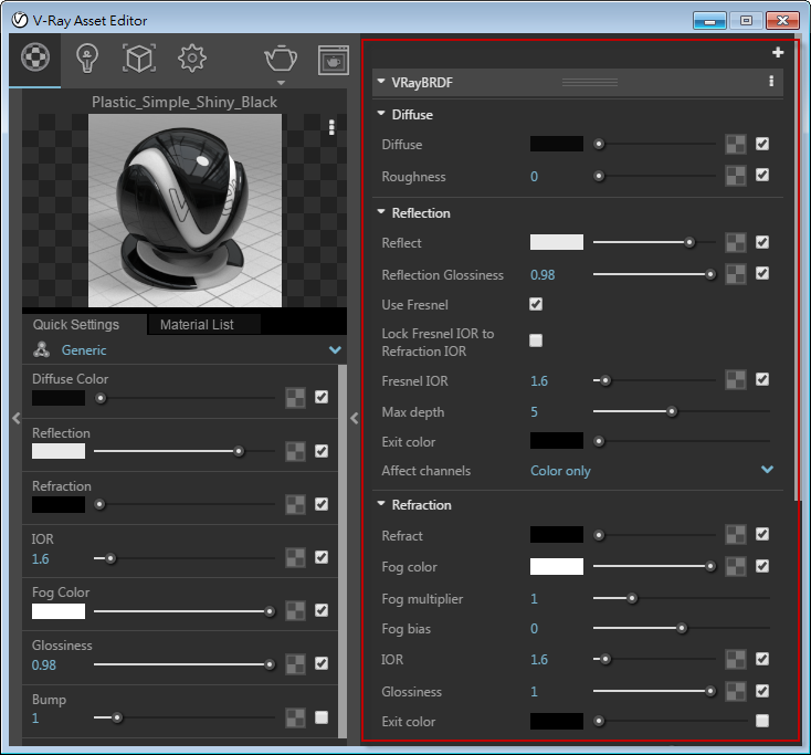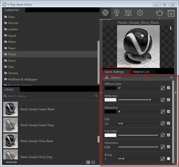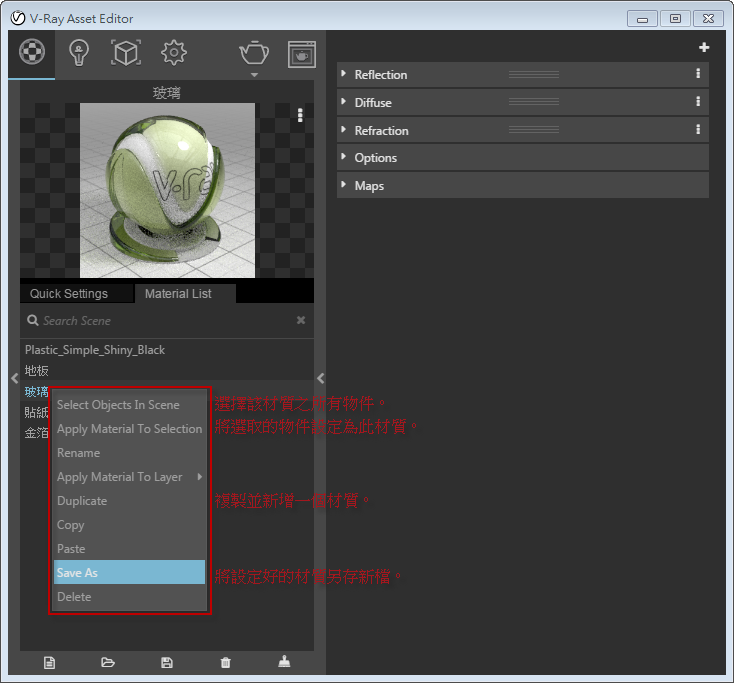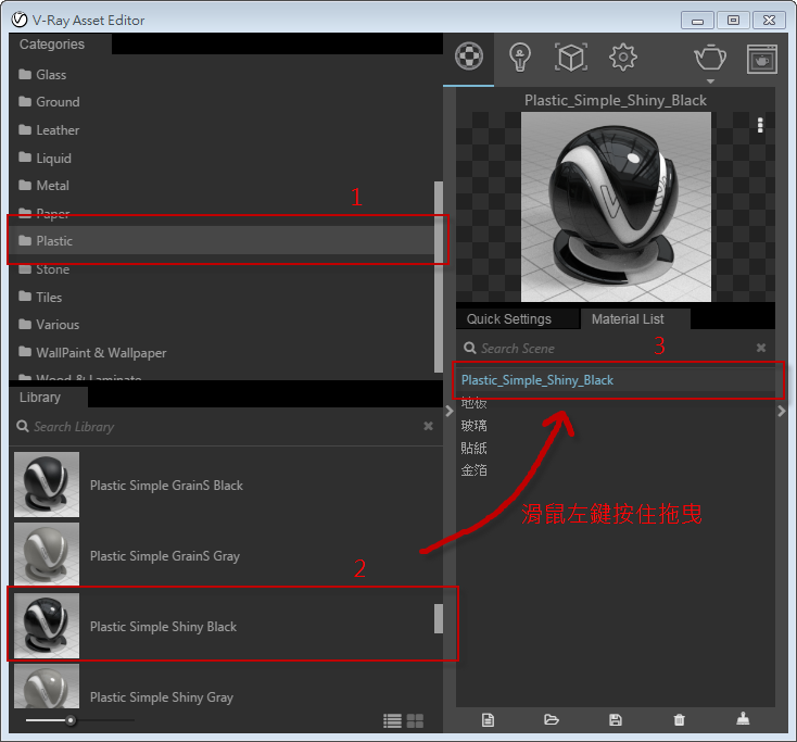 ▲圖二、新版V-Ray 3 for Rhino,版面新增即時預覽材質球,並且新增Quick Setting,一般單純的材質可以從快速設定中建立完成,亦可進入詳細設定將材質調整得更為細膩。