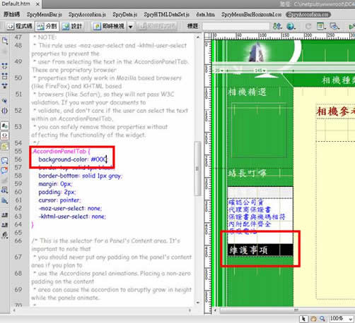 下圖是TQC「Dreamweaver CS4實力養成暨評量」書中的310題,Default.htm的編輯畫面。