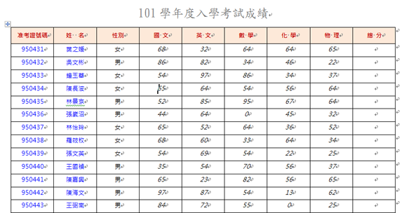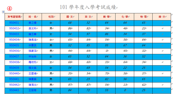 如何將一份有標題列的表格資料,針對奇(偶)數列快速填滿指定色彩。 範例:下圖表格,針對『奇數』的准考證號碼,填滿『淡藍色』背景色彩。