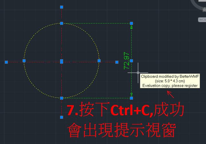 開啟AutoCAD2012,將繪製完成之圖示全部框選起來,按下[Ctrl+C](複製),若是成功會出現提示視窗,同時會顯示該圖實際被複製的大小。