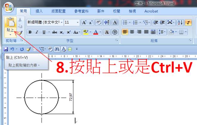 開啟Word2007,選擇「貼上」或是按下[Ctrl+V](貼上),圖片就會以WMF格式插入,其線條顏色及粗度就會按照所設定的格式。