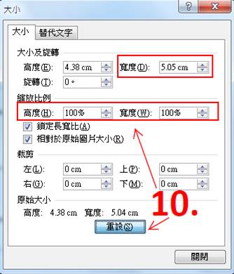 按下「重設」後,縮放比例的高度及寬度就會回歸到100%,大小也會顯示為原本在BetterWMF中設定的尺寸。