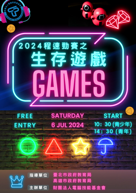 超刺激程式競賽"2024程速勁賽之生存遊戲"來囉!只要做錯一步馬上淘汰無法前往下一關挑戰!邀請全臺使用Python、C、C++、C#、Java、GO的程式高手一起來參加這場緊張刺激的專業對決。準備好迎接挑戰了嗎?立即報名參賽,展現你的實力,贏得屬於你的獎金!