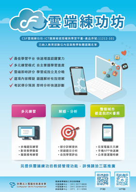 【CSF雲端練功坊】強大運算系統,完整記錄作答,對各領域答題統計分析預測得分,並提供全站排名、最常錯題等功能,部分科目提供詳解,是最方便、有效率的線上隨身指導。另有教師管理功能,提供老師自行建立學習群組,學生加入老師建立之群組,進行跨群成員管理、多班報表分析、小考與作業功能。
