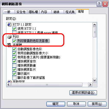 【列印網頁背景】 有時我們看到很漂亮的網頁,想要列印下來時卻發現背景色及圖不會印出來,這是因為使用IE瀏覽器列印網頁時,所預設的選項是不會列印出背景的顏色,我們可以去相關的設定畫面修改,讓IE瀏覽器可以印出網頁的背景,